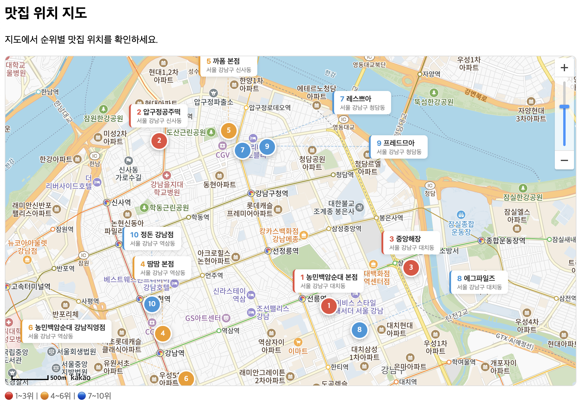 강남구 맛집 베스트 10 순위표