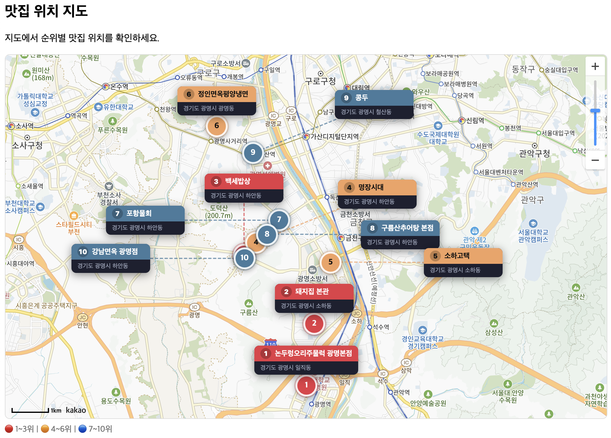 광명시 맛집 베스트 10 순위표