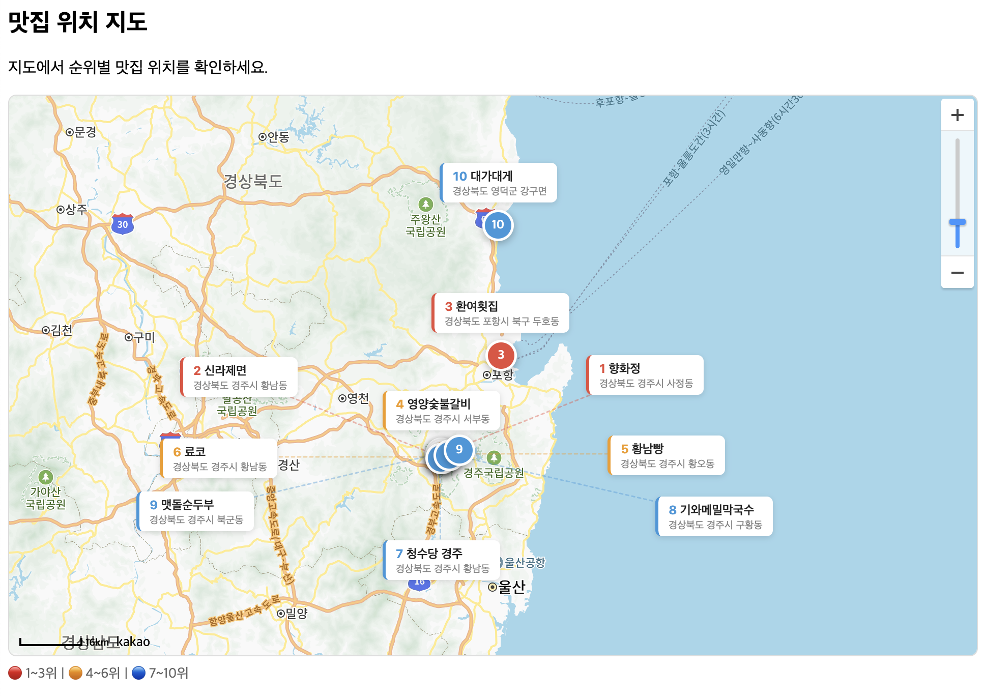 경북 맛집 베스트 10 순위표