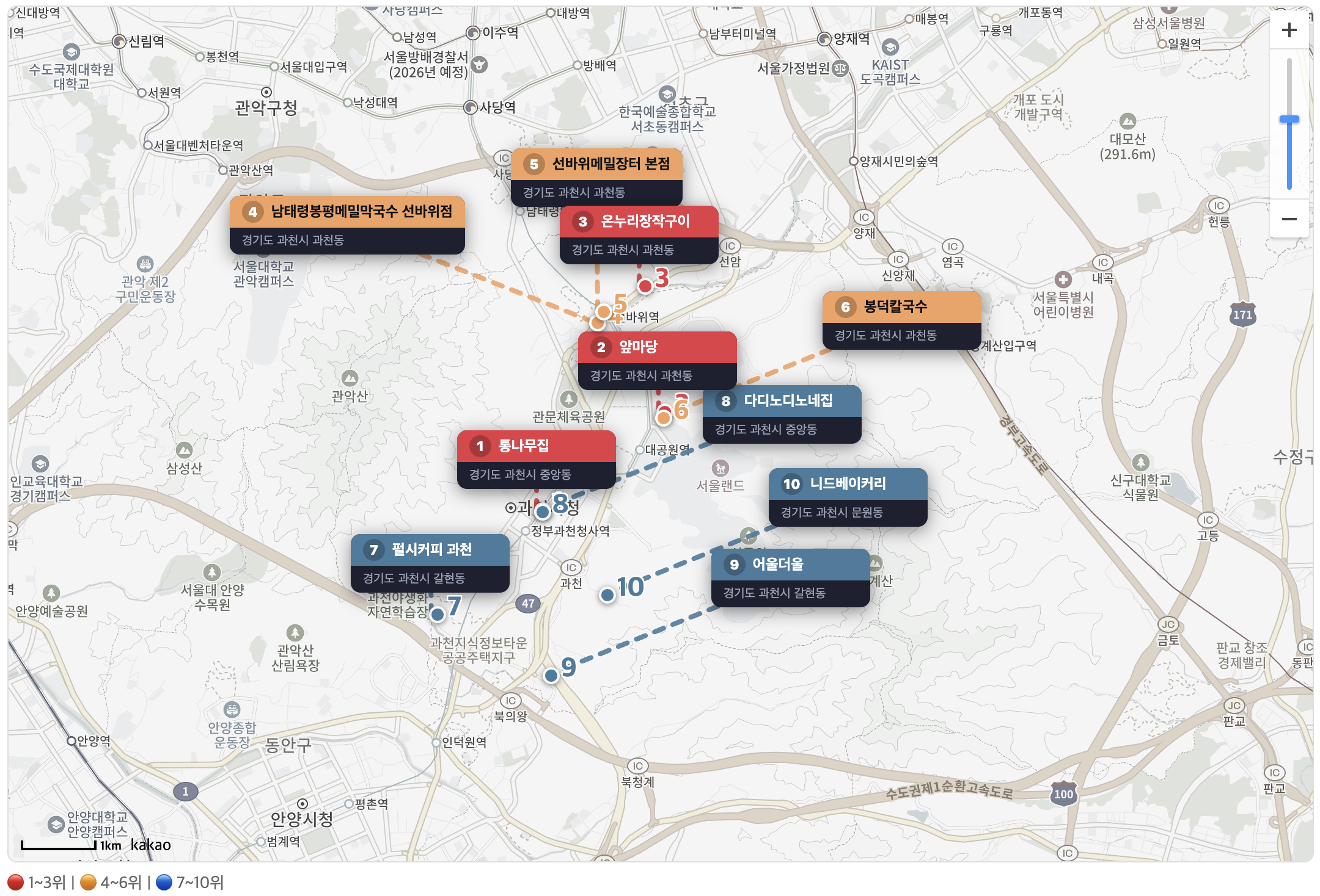 과천시 맛집 베스트 10 순위표