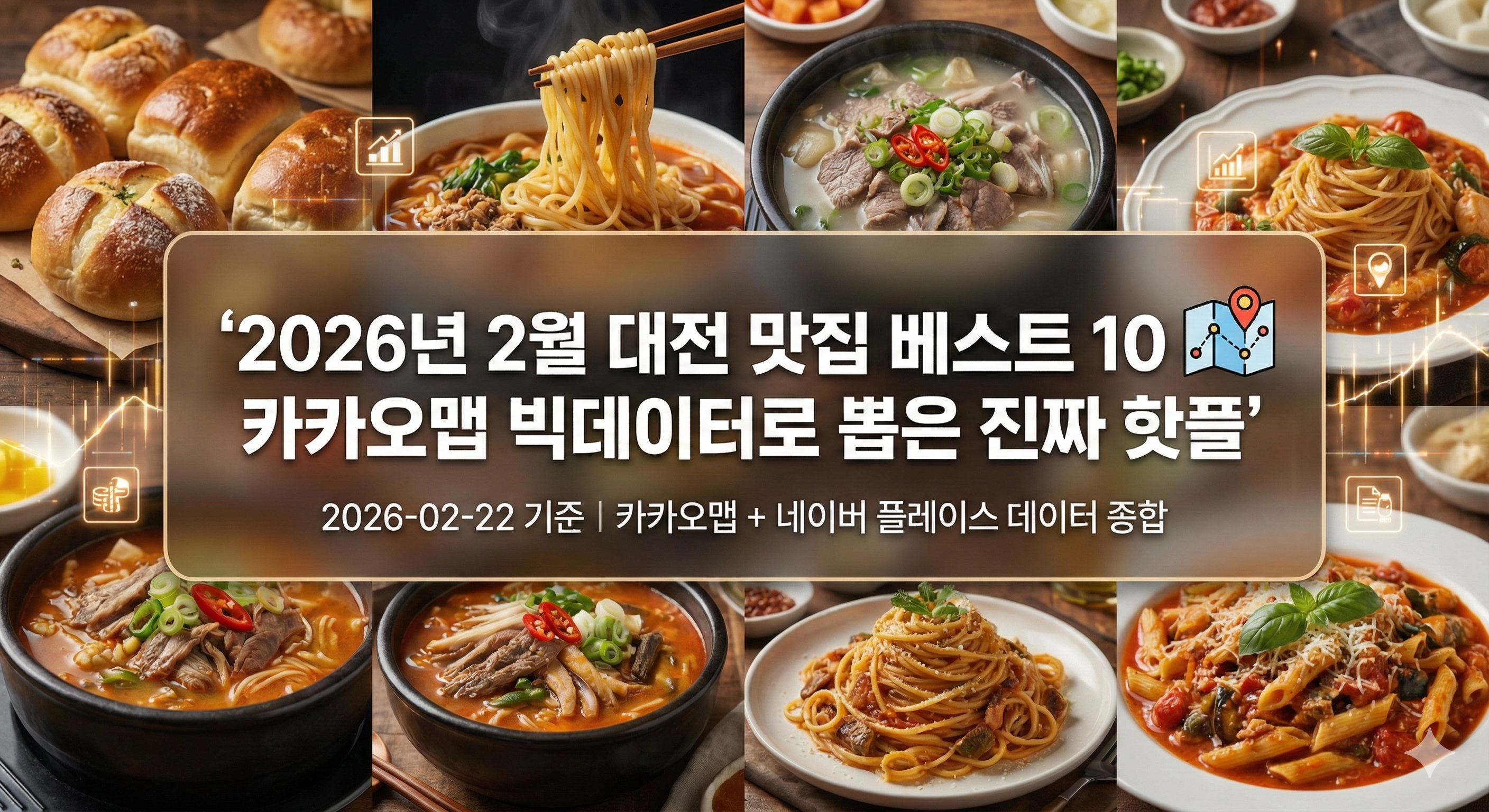 대전 하면 떠오르는 게 성심당만은 아닙니다. 물총조개 칼칼한 칼국수, 3대째 이어온 소국밥, 한국식 퓨전 파스타까지, 알고 보면 먹거리 하나하나에 저마다 깊은 내공이 담긴 도시예요. 이번 달은 카카오맵 길찾기, 검색, 즐겨찾기, 공유 데이터를 종합해 실제로 사람들이 가장 많이 찾는 대전 맛집 열 곳을 뽑아봤습니다. 주관적인 추천이 아닌 빅데이터 기반이라 더 믿을 수 있어요.