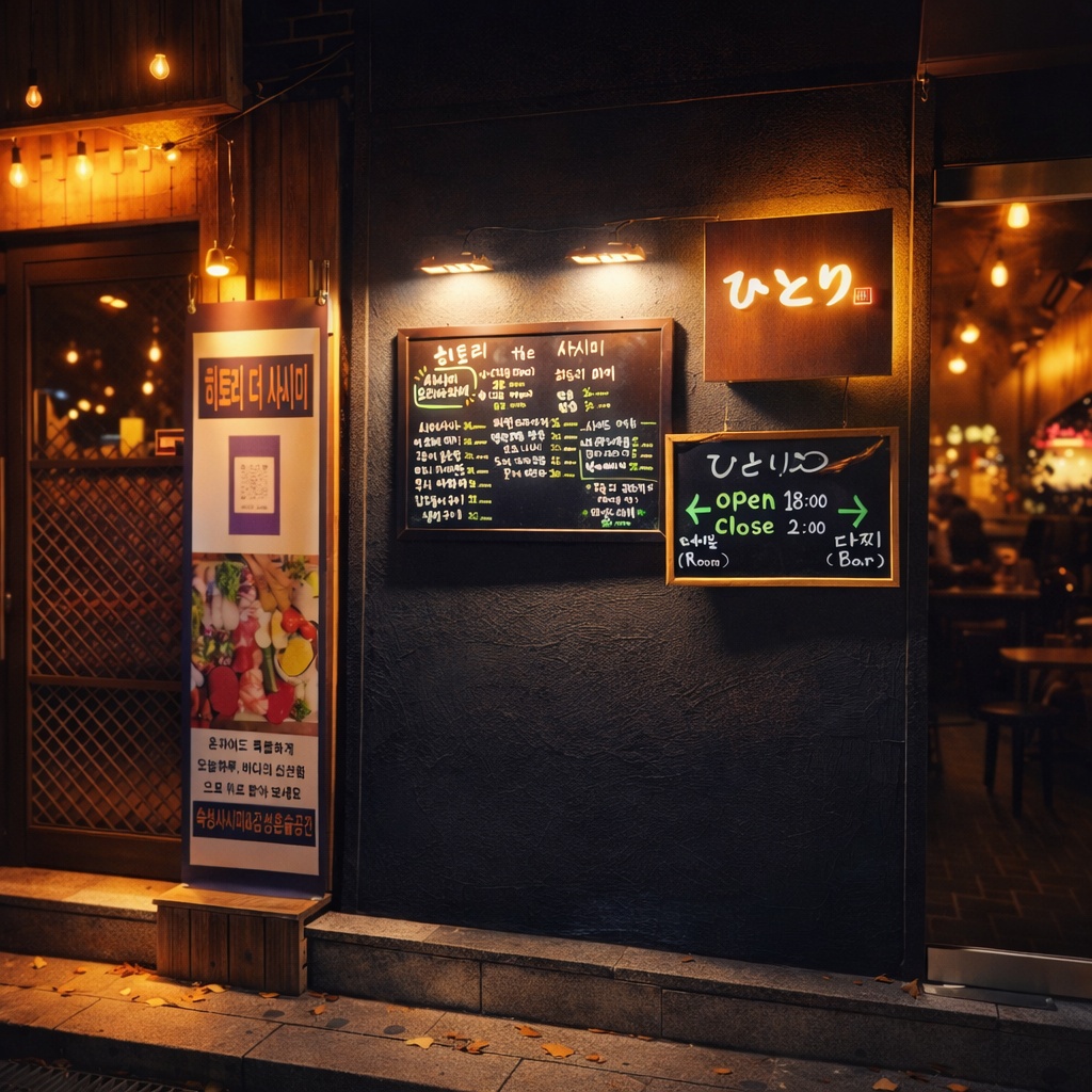 봉천로에 위치한 히토리더사시미는 숙성회를 전문으로 하는 일식 레스토랑입니다. 다찌석과 테이블석이 분리되어 있어 원하는 분위기에서 식사할 수 있고, 테이블 앞에서 직접 회를 썰어주는 모습을 볼 수 있는 다찌석은 특히 좋아하는 분들이 많더라고요. 리뷰 키워드에 신선함, 가성비, 깔끔한 분위기가 반복적으로 등장하는 곳입니다.