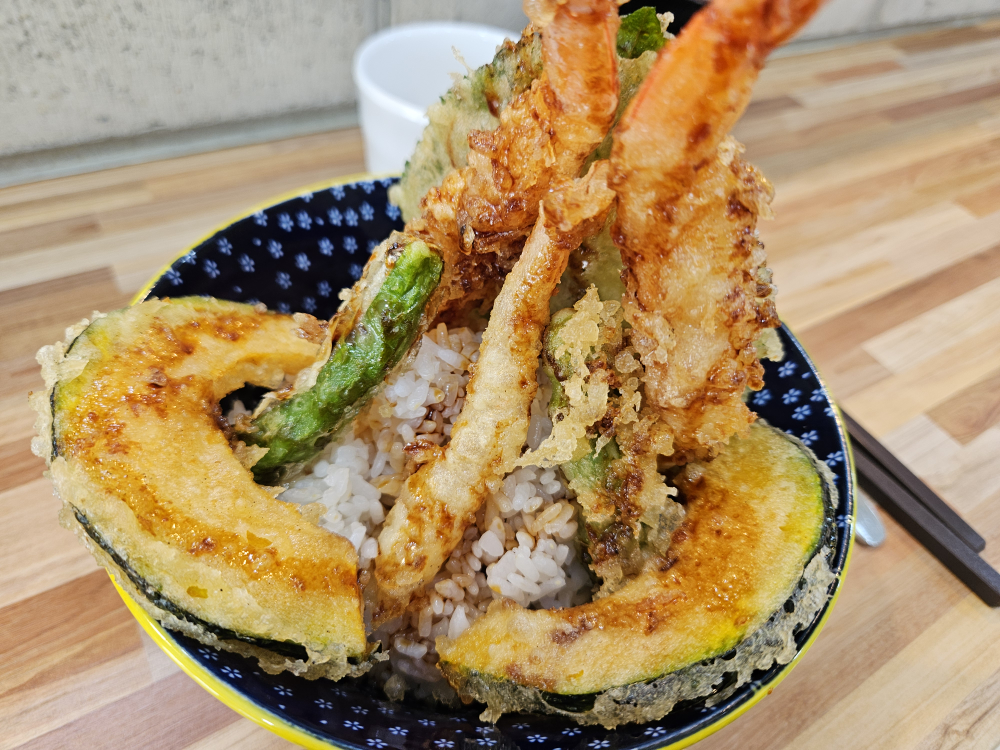 튀김옷이 얇아 재료 본연의 맛을 살린 텐동이 대표 메뉴예요. 아나고새우텐동에 수란을 추가하면 더 풍성하게 즐길 수 있고, 단호박, 연근, 깻잎 등 야채 튀김도 빠질 수 없는 구성이에요. 사케동은 신선한 연어가 부드럽게 녹는다는 평이 많고, 전국 텐동 맛집 중 여기가 제일 맛있다는 극찬도 있습니다.