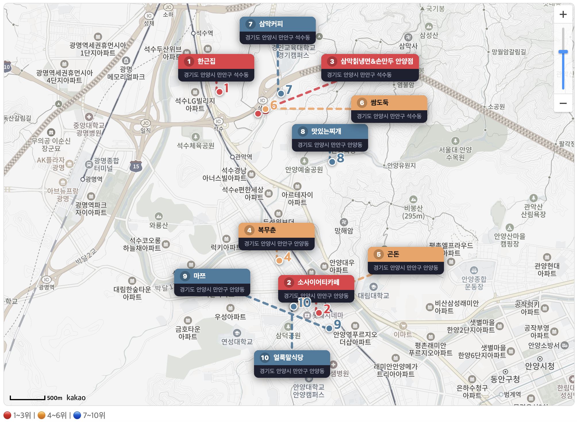안양시 만안구 맛집 베스트 10 지도