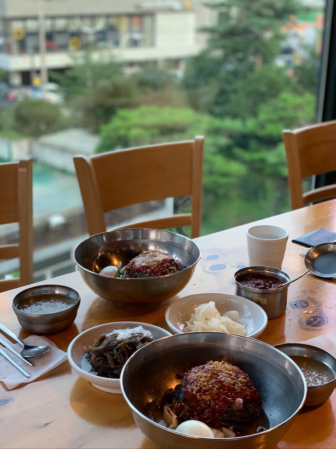 삼막로 골목 안에 자리한 삼막칡냉면은 1993년부터 시작해 지금은 3층 건물을 세운 안양의 터줏대감 같은 냉면집이에요. 통창 너머로 펼쳐지는 경치가 좋고, 넓은 매장과 여유로운 주차 공간 덕분에 가족 단위, 단체 모임 손님이 끊이지 않습니다.