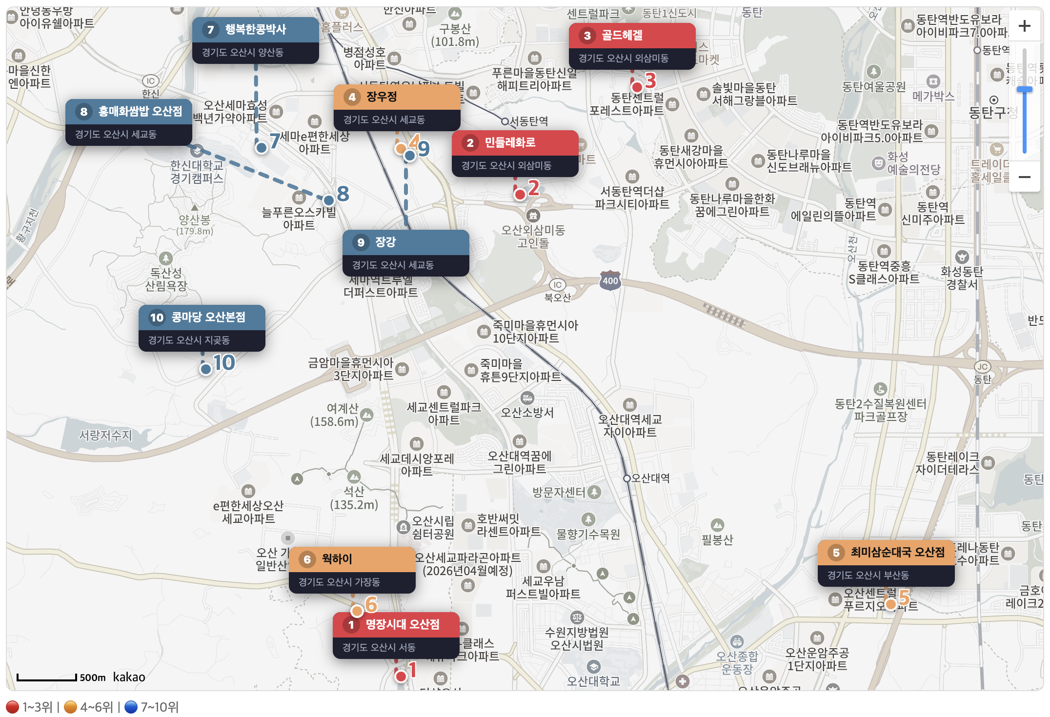 오산시 맛집 베스트 10 지도