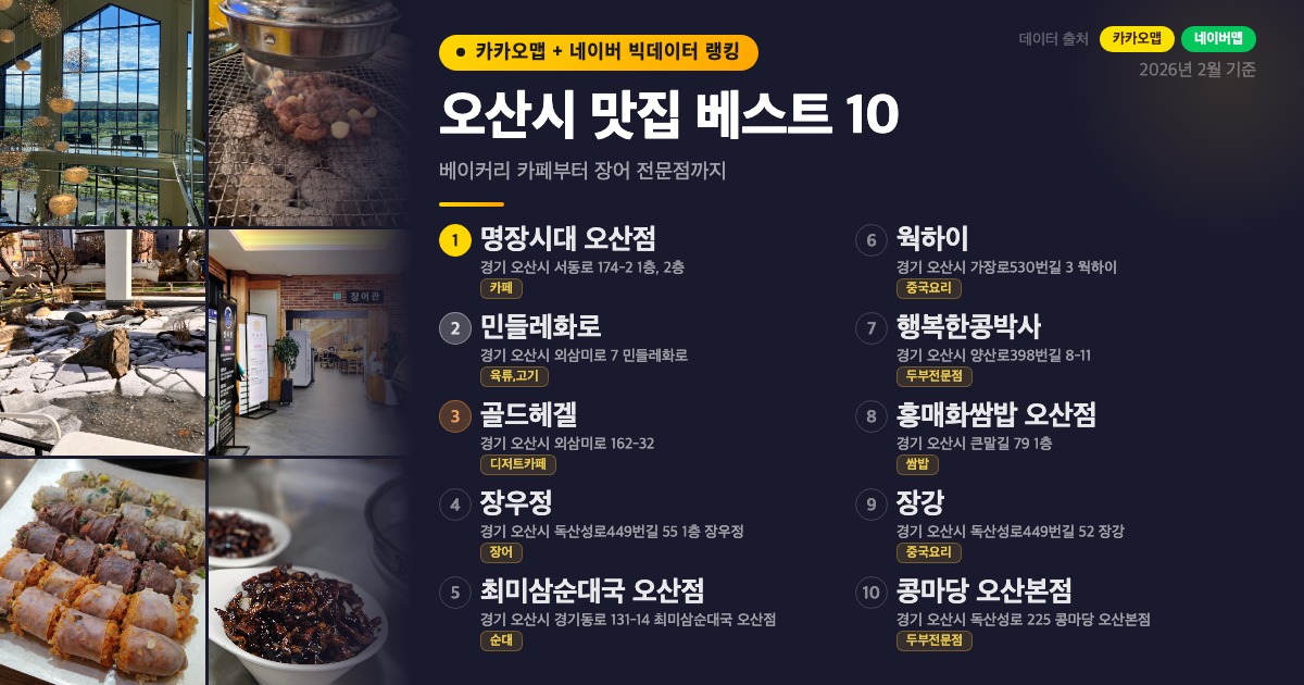 오산시 맛집 베스트 10 순위표