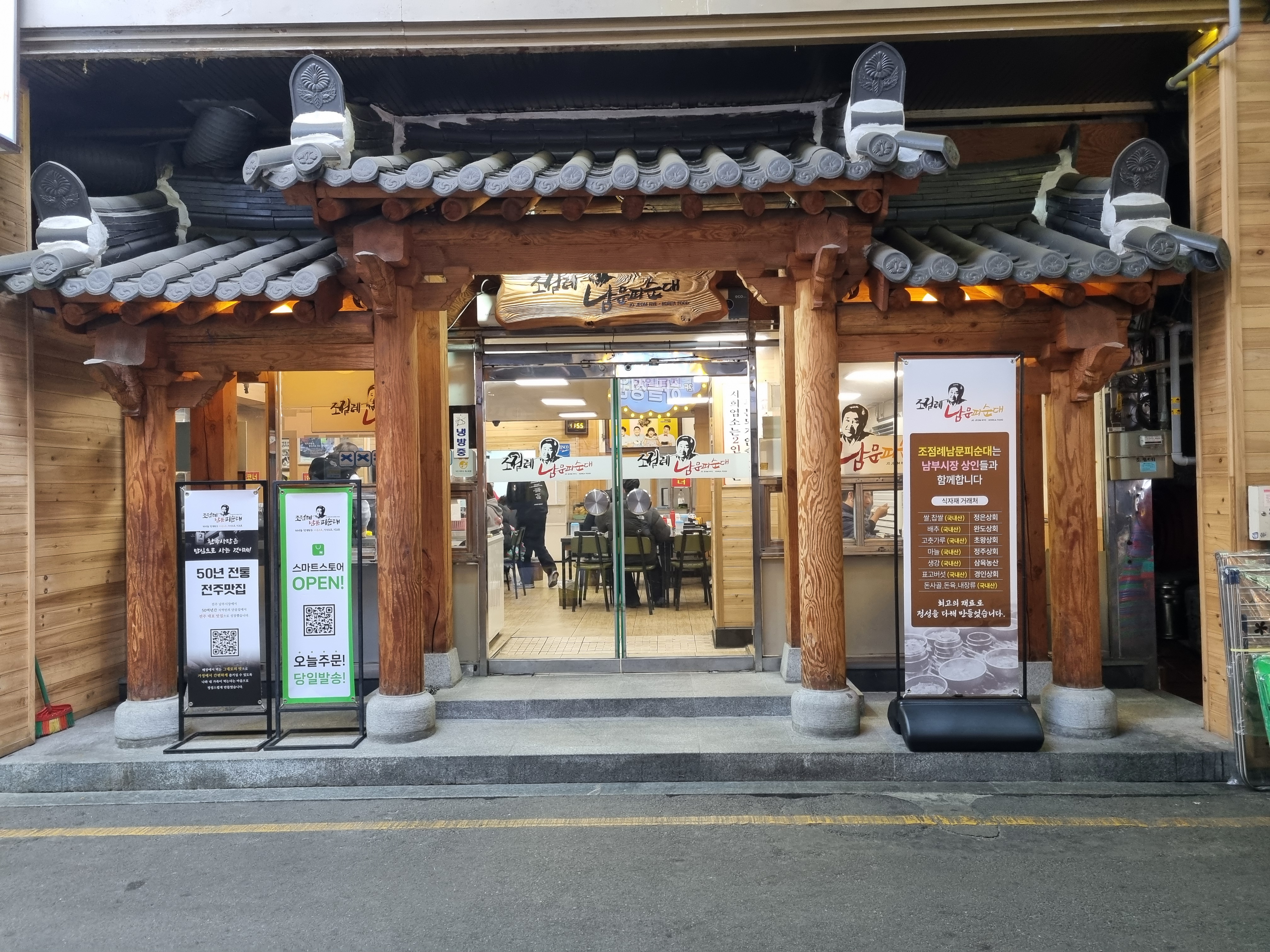 전주 남부시장 안에 위치한 조점례남문피순대는 50년 가까운 역사를 자랑하는 피순대 전문점입니다. 생방송투데이에도 소개된 바 있는 이 집의 피순대는 잡내 없이 부드러운 식감이 특징이에요. 순대국밥은 맵기 조절이 가능하고, 피순대가 부담스럽다면 당면 순대나 잡채순대만으로도 주문할 수 있어 다양한 입맛을 배려한 것도 눈에 띕니다.